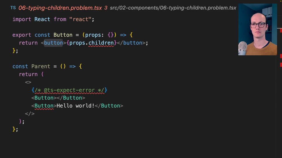 0:15 How do we type this, though, in TypeScript? I see a lot of teams going children any, like this, which I guess is acceptable, but there is actually a legit way to do this and a proper way to define this.