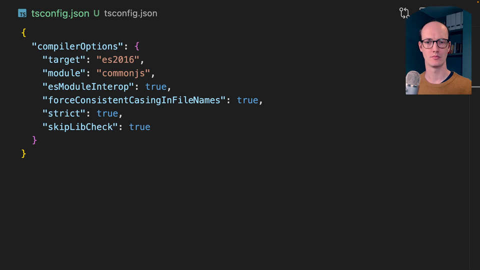 0:17 We also have a tsconfig.json, which is the base tsconfig that you get if you run tsc init. This is a really, really simple project. It doesn't have React in it yet. It doesn't really have anything. What I'm going to do is I'm going to show you how to get React into a simple project like this. This will show you how React and TypeScript relate together.