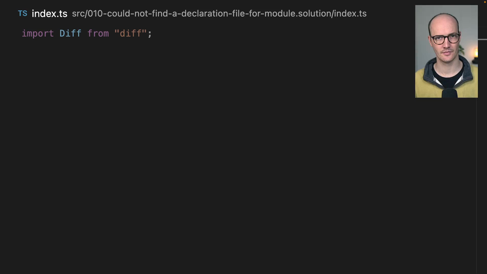 01:32 here is we could not find a declaration file for module diff. So for whatever reason, the owners of diff, the maintainers of it, don't want to add declaration files to the project themselves. So that we need a kind of community solution to be able to actually add those ourselves.